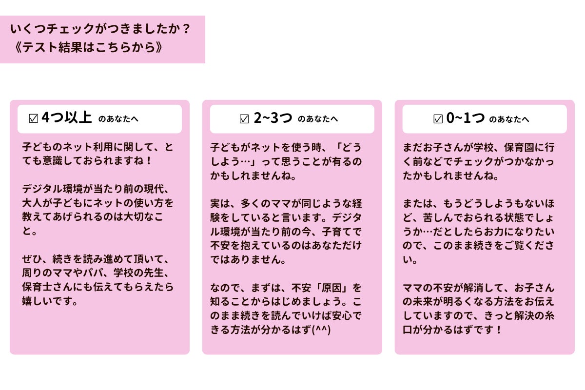 でも、今回のテストのように、「ネットの存在は子育ての不安にも繋がっている」ようです。