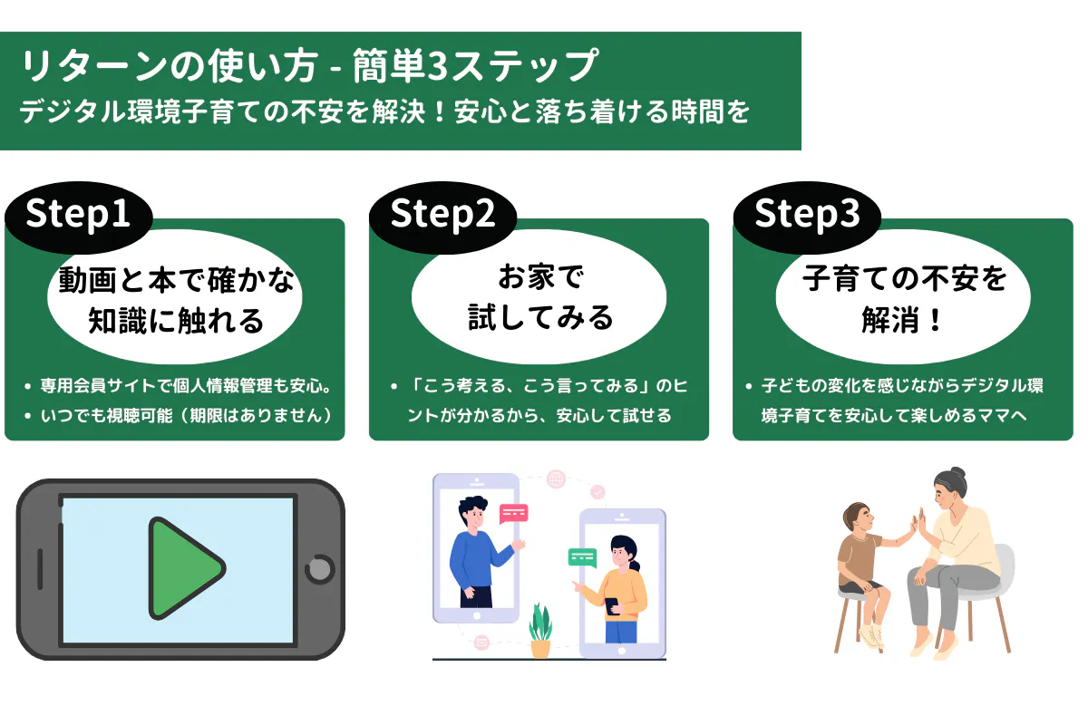 ワンコイン500円と引き換えに手に入れた新常識が、ママ、パパの抱えるネットと子育ての不安・心配ごとを1つずつ消してくれます。