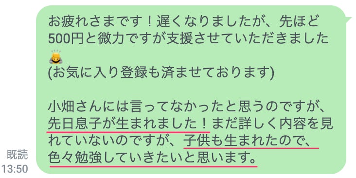 本日は、支援者様から嬉しいお声を頂いたので掲載させて頂きました!