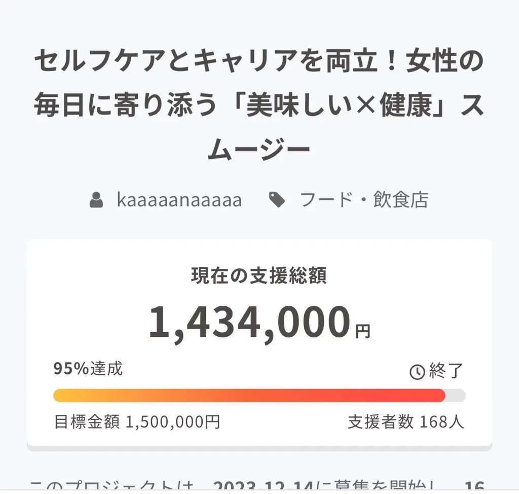 お陰様で目標金額95%達成しました。