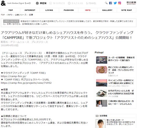 現在までに「朝日新聞デジタル」「exciteニュース」「zakzak」をはじめとした22のメディアに取り上げていただきました。twitterやFacebookでも情報拡散に努めていますが、プレスの伝達力は凄まじいですね~。引き続き情報をシェアしてまいります。