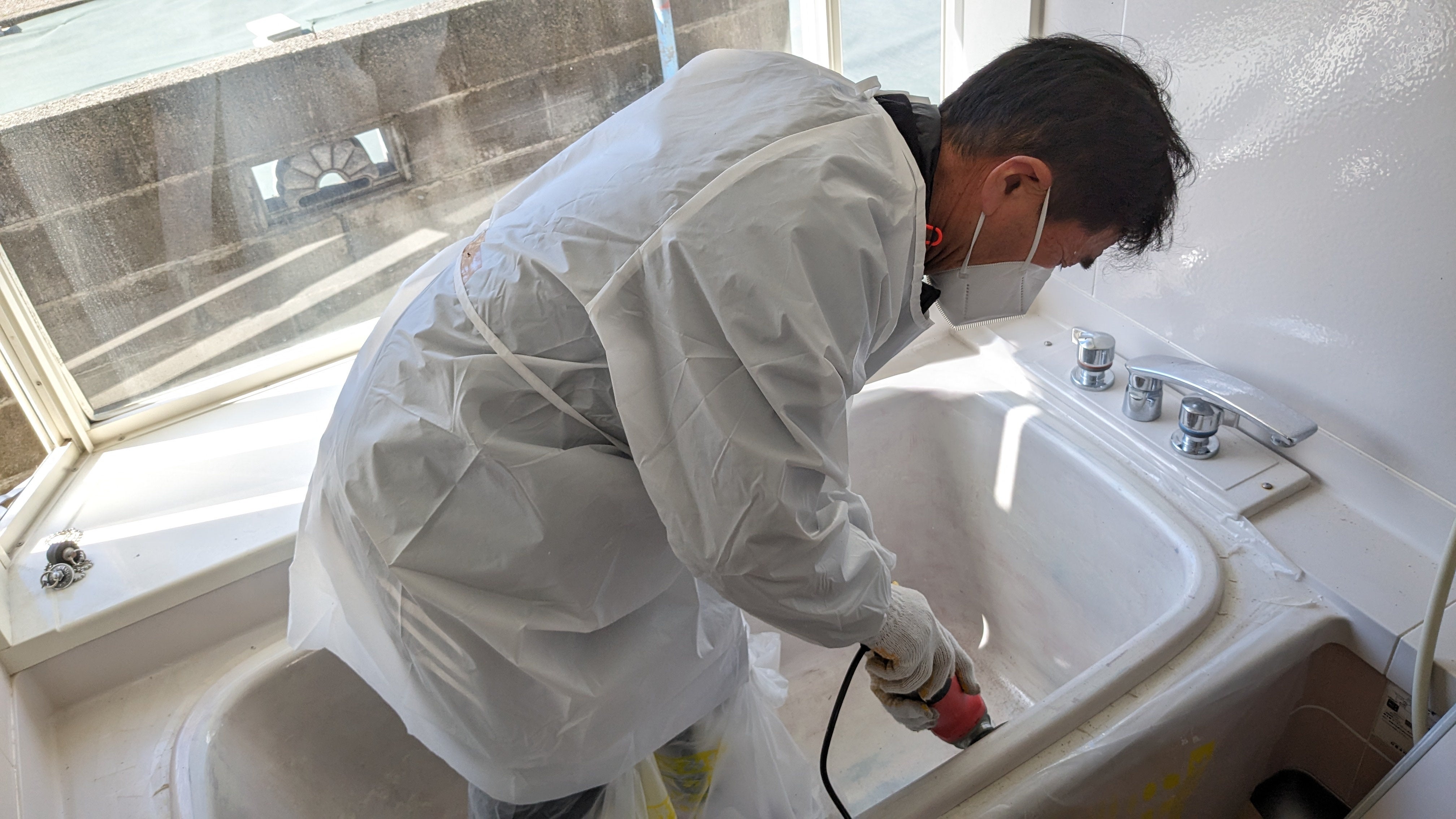 お風呂の塗装剥し 研磨から塗装まで、、道のりは長そうです