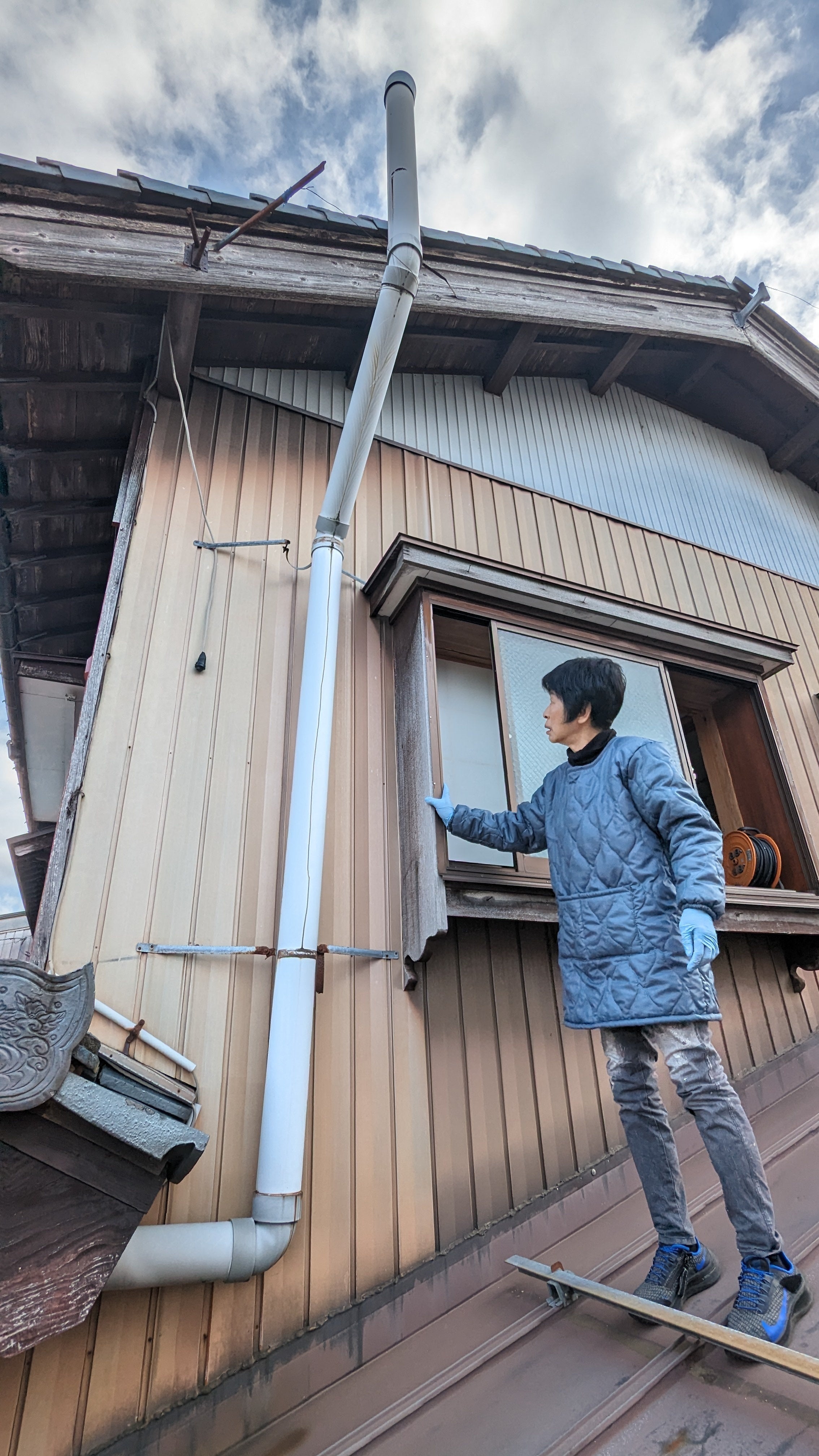 大昔の汲み取り式トイレについていた換気用パイプも撤去します