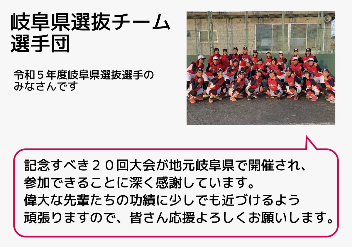 当協会の目標は、岐阜県のチームが国体に出場することで、ソフトボールの競技人口を少しでも増やし、全国大会への支援をより強化することです。