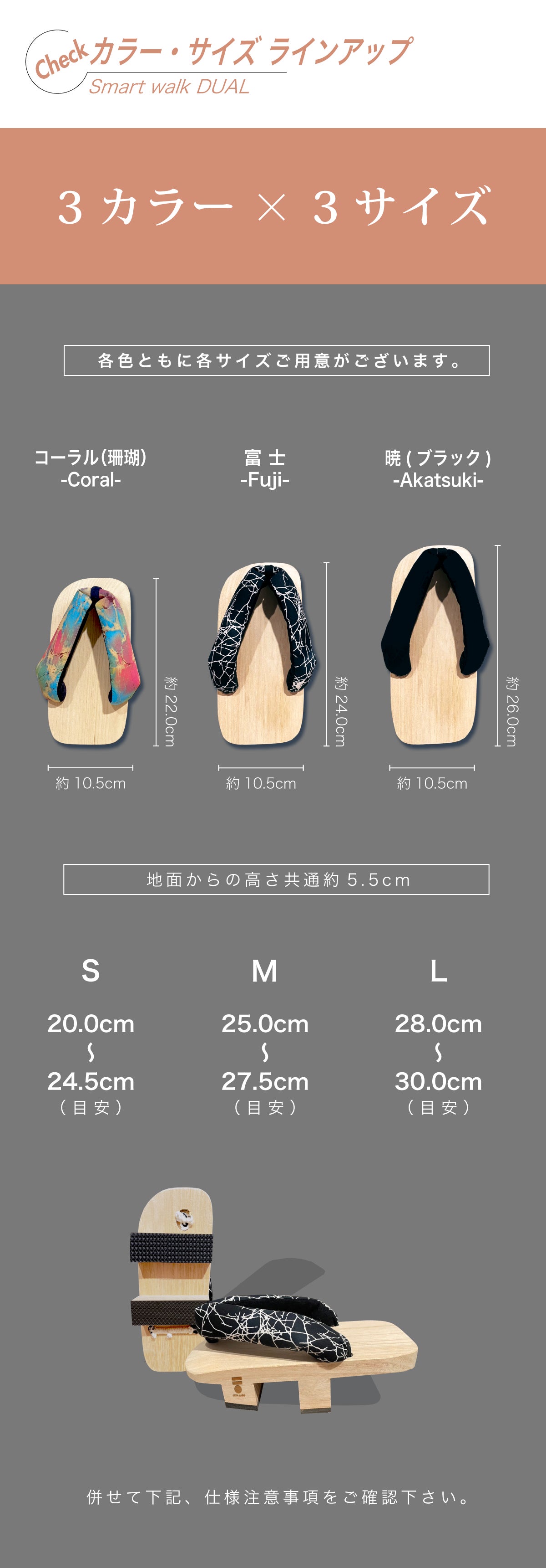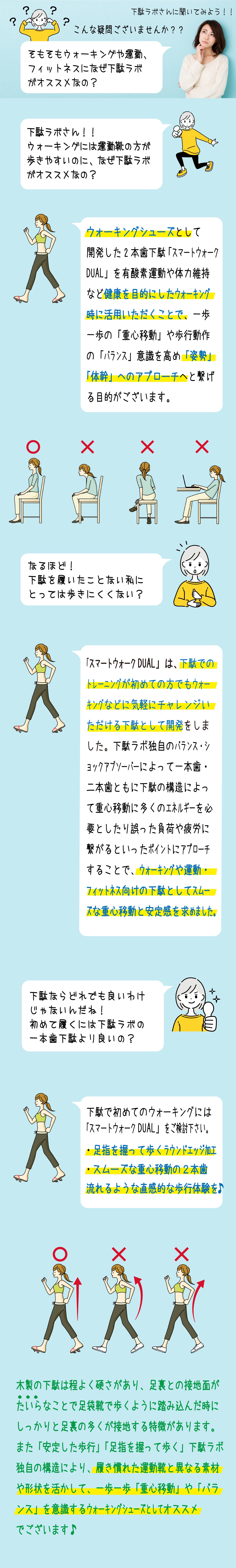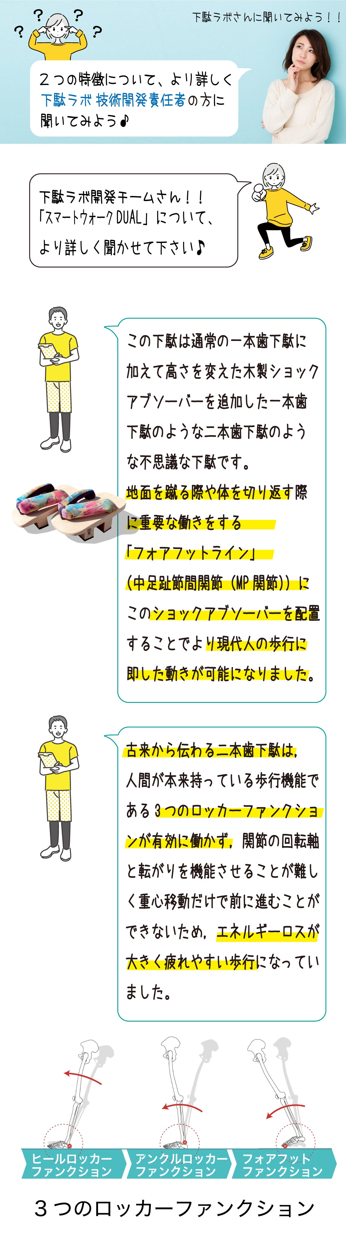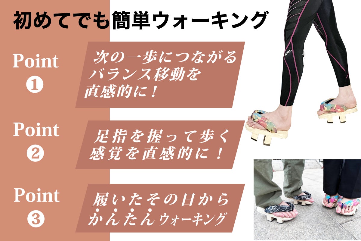 そんなGETA LABOから、下駄でのトレーニングが初めての方でもウォーキングなどに気軽にチャレンジいただける下駄として開発した2本歯下駄「スマートウォークDUAL-デュアル-」のご提案です。