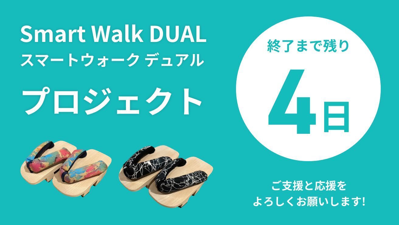 Smart Walk DUALスマートウォーク デュアルプロジェクト終了まで残り【4日】です!!この24時間で8名の方からご支援を頂きました!!本当にありがとうございます!!1つの目標である100万円まで、あと8万円ほどですが、それ以上に1人でも多くの方にGETA LABO の一本歯下駄を知っていただきたいという想いです。最後まで発信を続けてまいりますので、ご支援・お力添えのほど、よろしくお願いいたします!!