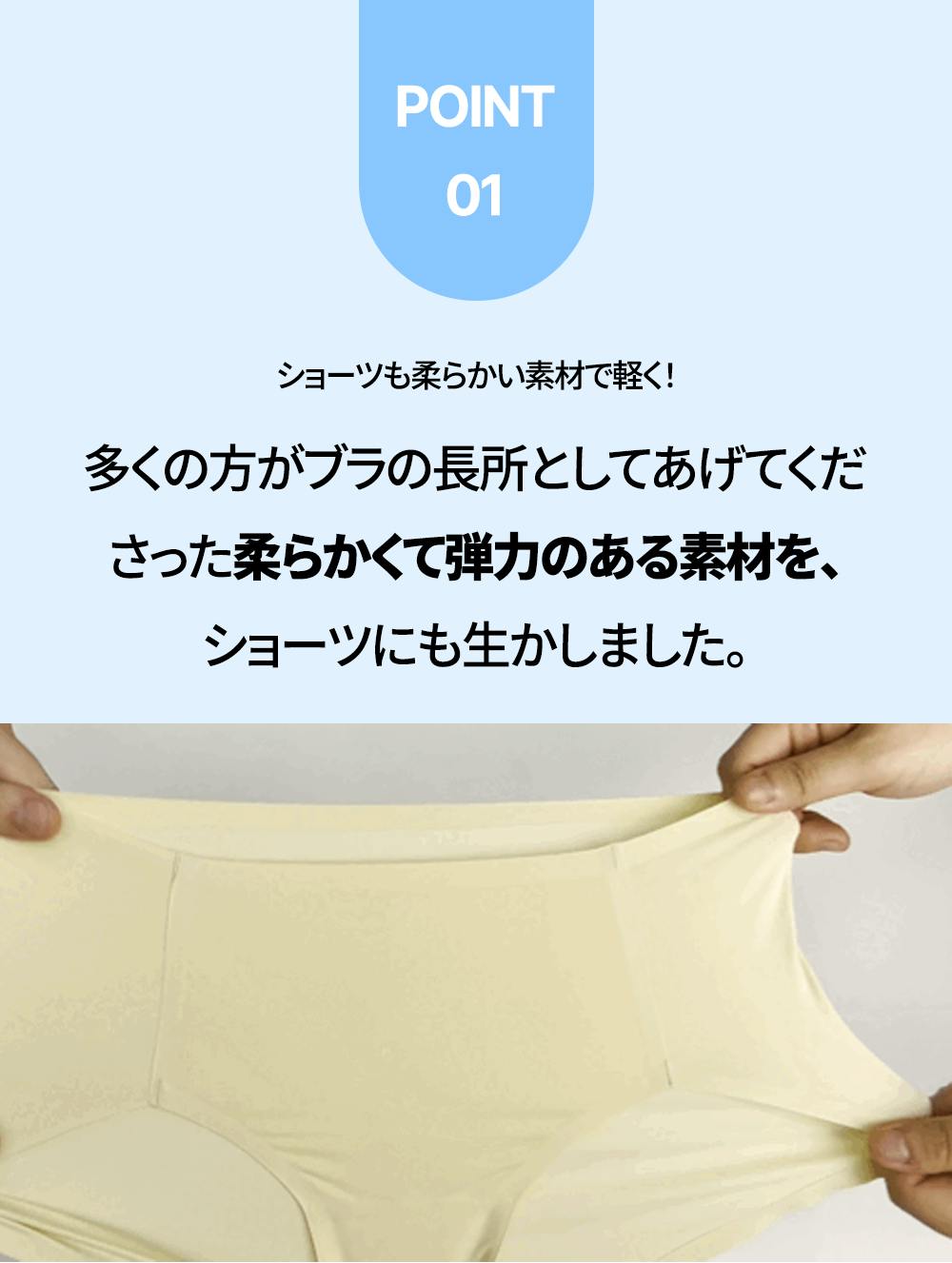1.シームレス素材で息苦しさや締め付けるところから解放。一年中楽に着れる下着です。