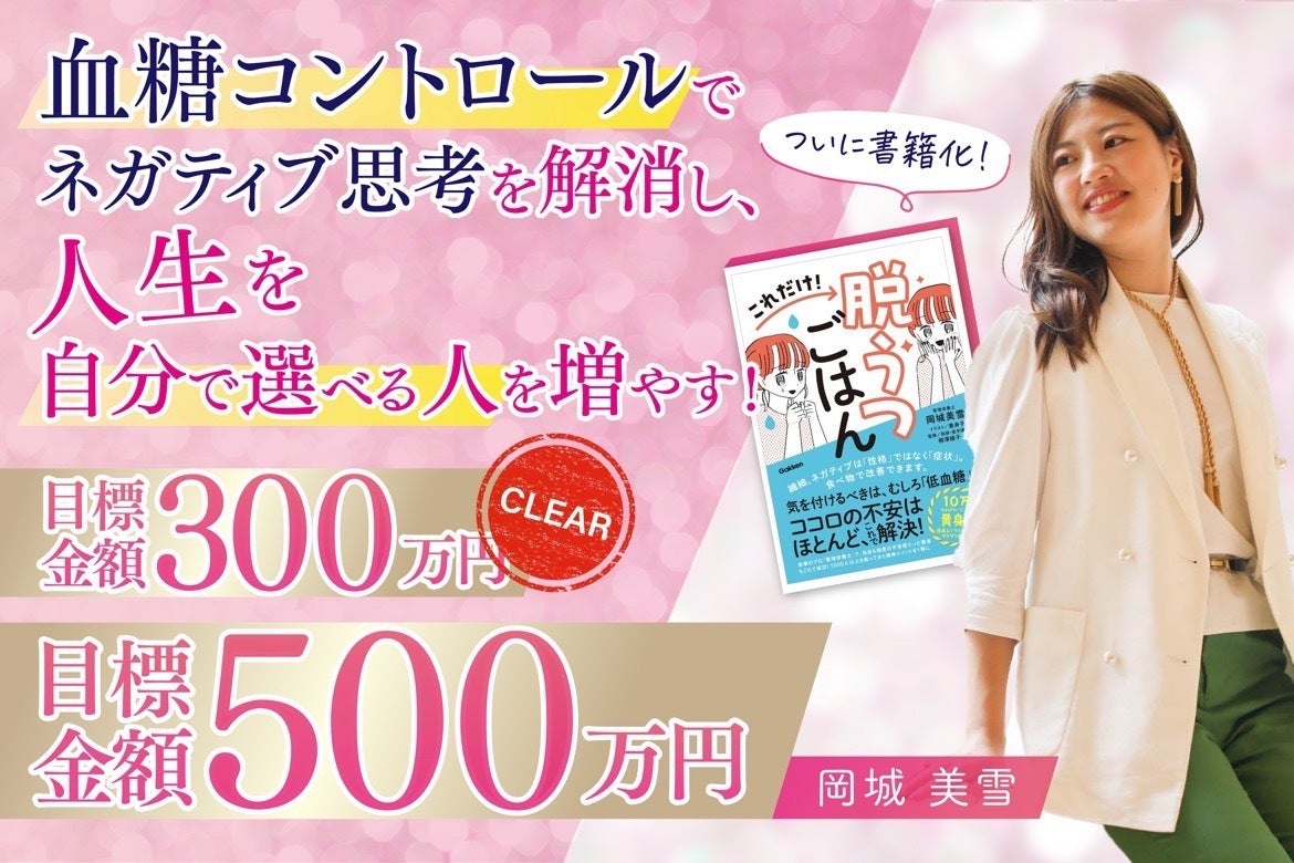 目標の3倍を上回る結果でプロジェクトが終了しました!本当に、本当に、たくさんの応援をいただきありがとうございました。最後の最後に皆さまからの応援が本当にすごくて・・・もうこんなに感謝した1か月は生まれて初めてというくらい毎日「ありがとうございます」と感じ続ける日々でした。初めは無謀と思った挑戦でしたがこうして一歩踏み出してみるとたくさんの温かい応援をいただき本当に胸がいっぱいです。さて、ここからは皆さまからいただいたご支援で書籍の広告を回していきます。少しずつの展開にはなりますが引き続き応援していただけたら嬉しいです。※リターンで書籍の購入をされた方は届くまで少しお待ちくださいね。この本からネガティブ思考を卒業し本来の自分を取り戻す人が増えていきますように。これからも発信し続けていきます。岡城美雪