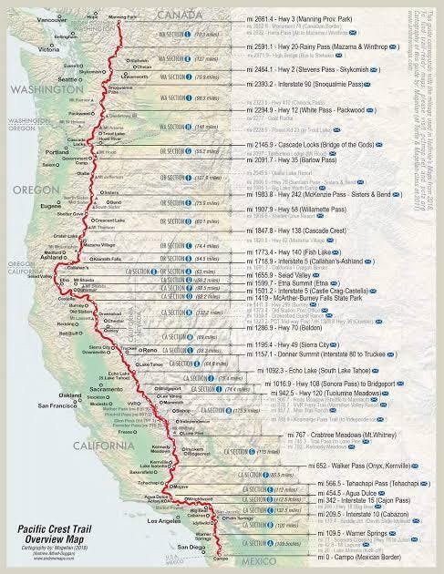 PCT《Pacific Crest Trail》とはメキシコ国境からカナダ国境まで、アメリカ西海岸を全ての荷物を背負い、徒歩で縦断する約2,650mile (4,265㎞) のロングトレイルです。