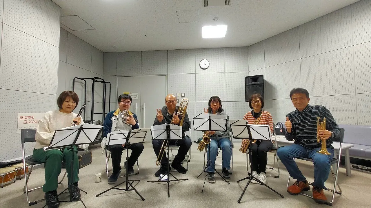 少ないながらも有志が集まって、眠っていた楽器をウン十年ぶりに取り出して 楽器に息を吹き込みました!最初はまともな音も出せませんでしたが、だんだんと当時の感覚を取り戻してきています。練習は、個人練習に加えて毎週集まっての全体練習を楽しくやっています。