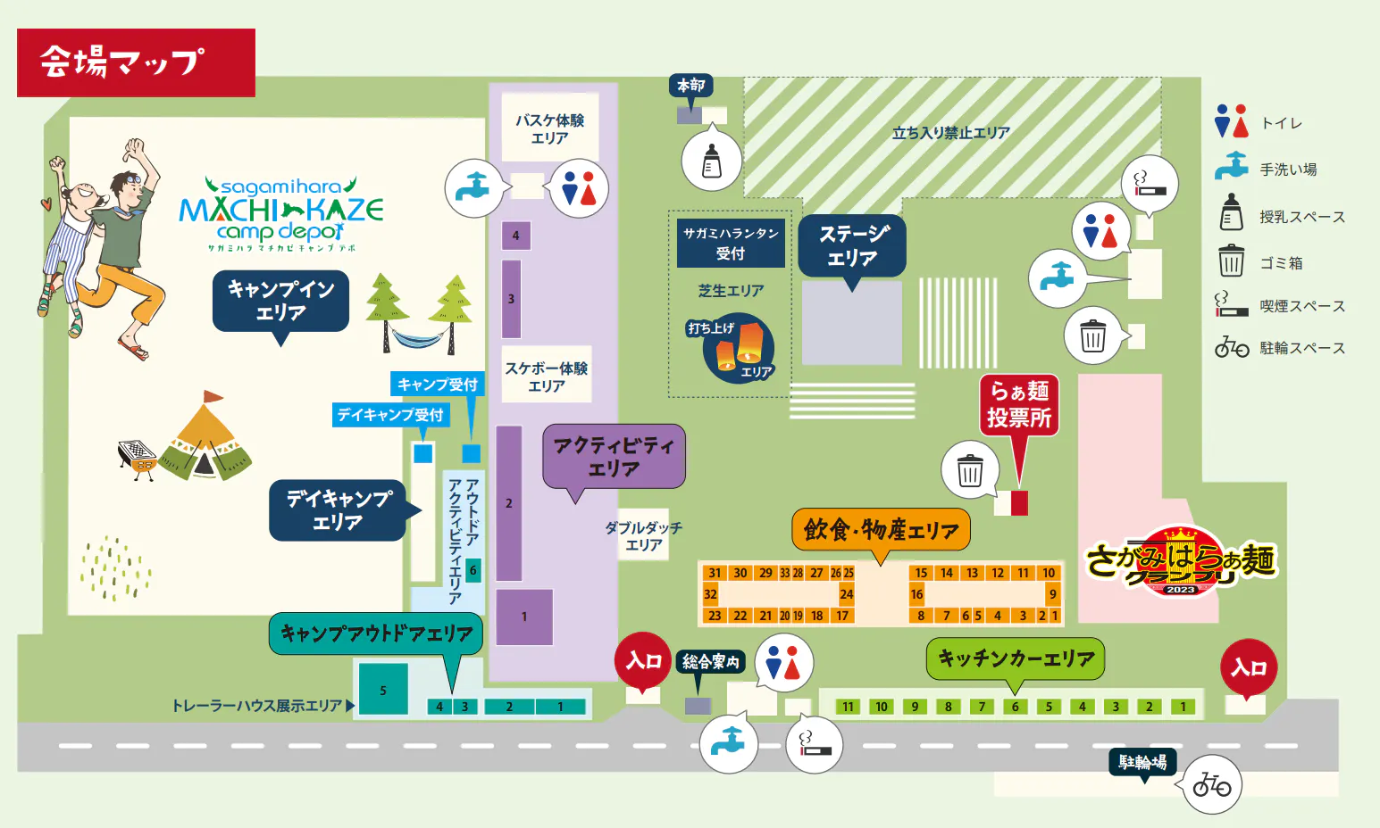 当日、不明な点がございましたら正面入り口右の総合案内テントまでお越しください。