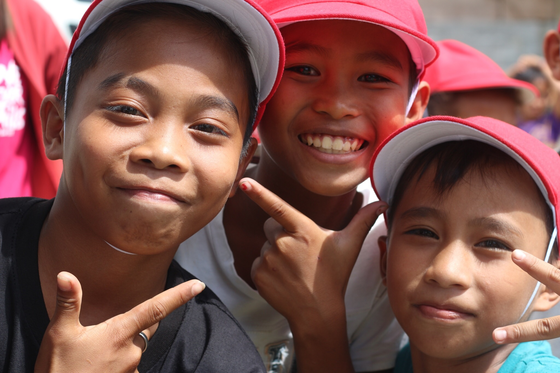 海の上に家が建てられた小さな孤島で過ごす子どもたちと歌を歌い、島全体をめぐり自然を生かしたミッションゲームを行いました。鉛筆・ノート・水風船・日本の駄菓子をプレゼントしました。
