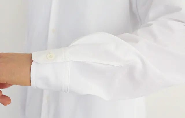 ビジネスでも袖OK!袖の丈感は一般的な長さに仕立てています。
