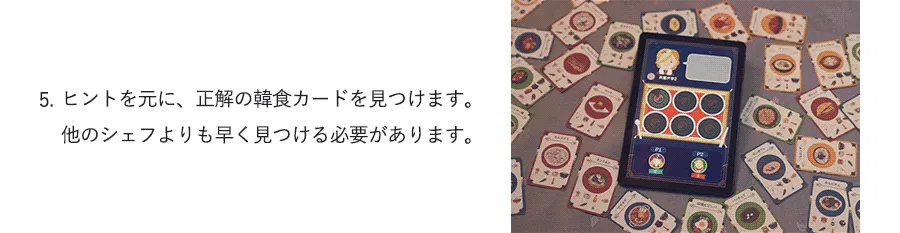 複雑なルールはなく、ゲームを楽しむ中でさまざまな韓国料理に関する情報を得ることができます。