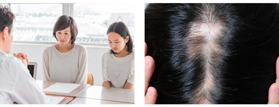最初は小さな円形でしたが、次第に髪の毛全体が薄くなっていきました。友達に知られないよう「隠す」ことに必死で、学生生活を心から楽しめない。同年代から「ハゲ」と言われることも多く、心が折れそうな日々。