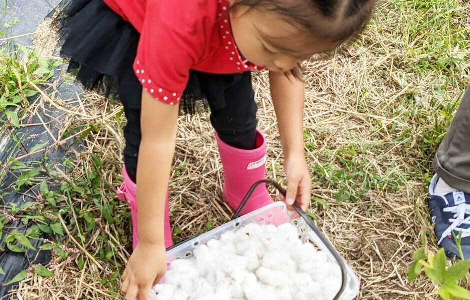 しかし、今回使用するオーガニックコットンは有害な化学農薬・殺虫剤を使用していないので、赤ちゃん・子どもにも安心です。