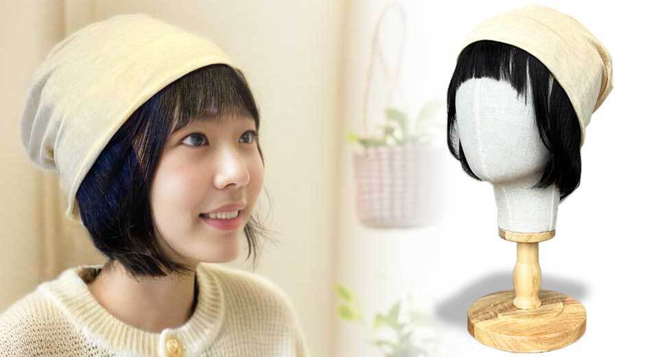 一体型にしたことで、ウィッグをかぶった上から帽子をかぶる必要はありませんし、ウィッグに合わせて帽子を買う必要もありません。締め付けも少なく、長時間の着用でもストレスなく過ごせるようになります。