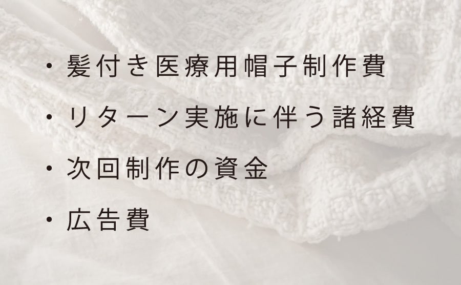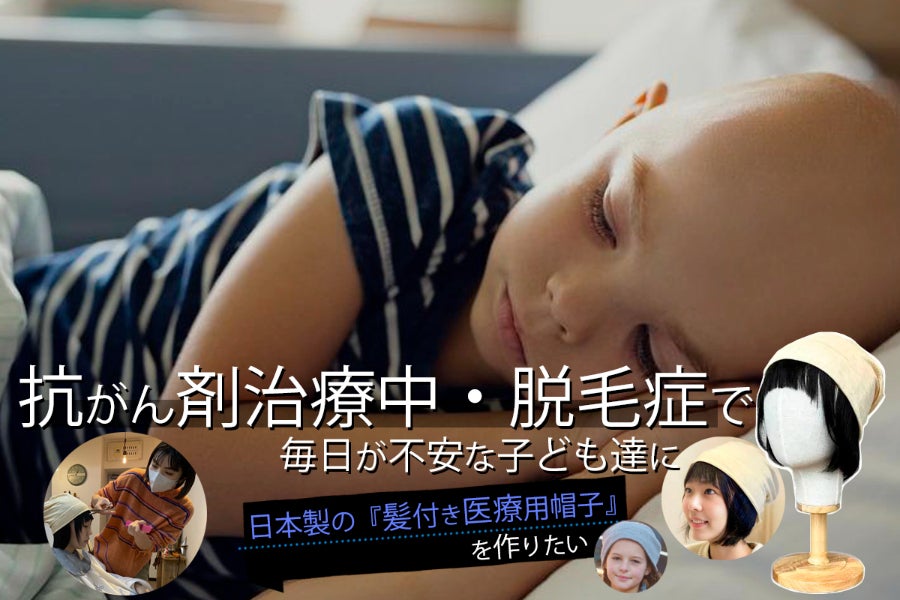 そこで私たちは、病気療養で苦しむ子どもたちの外見のケア(アピアランスケア)のために、オーガニックコットン100%の帽子と人毛100%の『髪付き医療用帽子』を作りたいと思っております。