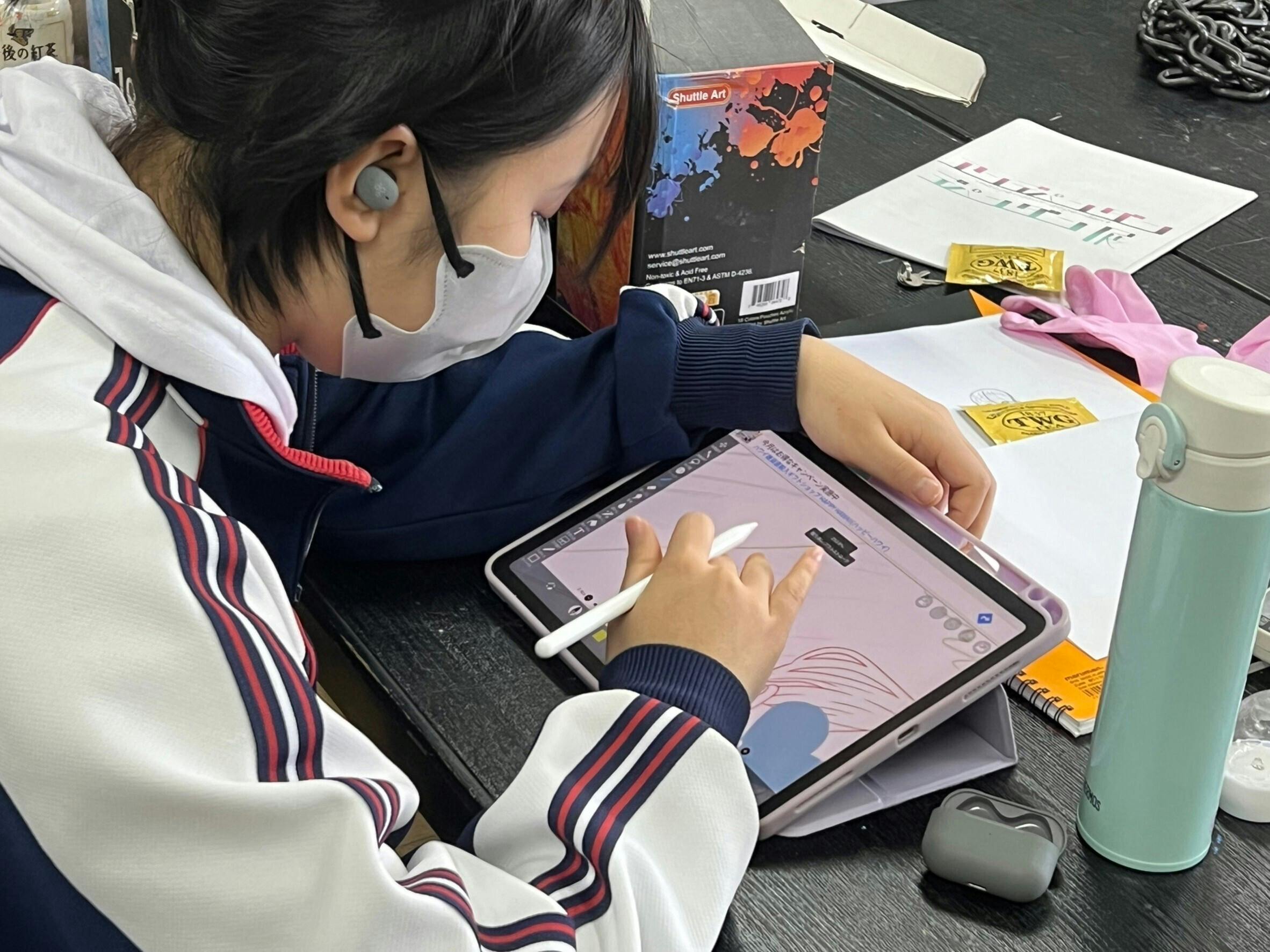 作業は筆をぐるぐるさせて楽しそう、、、かな。