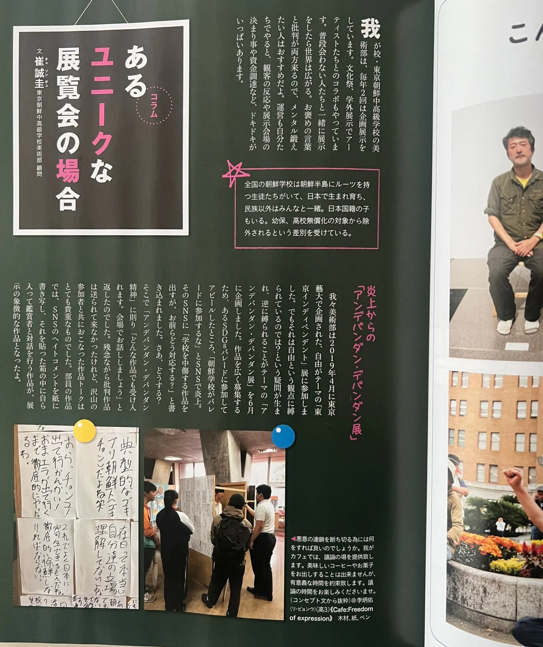 その流れに3ページで東京朝鮮中高級学校美術部が掲載されました。