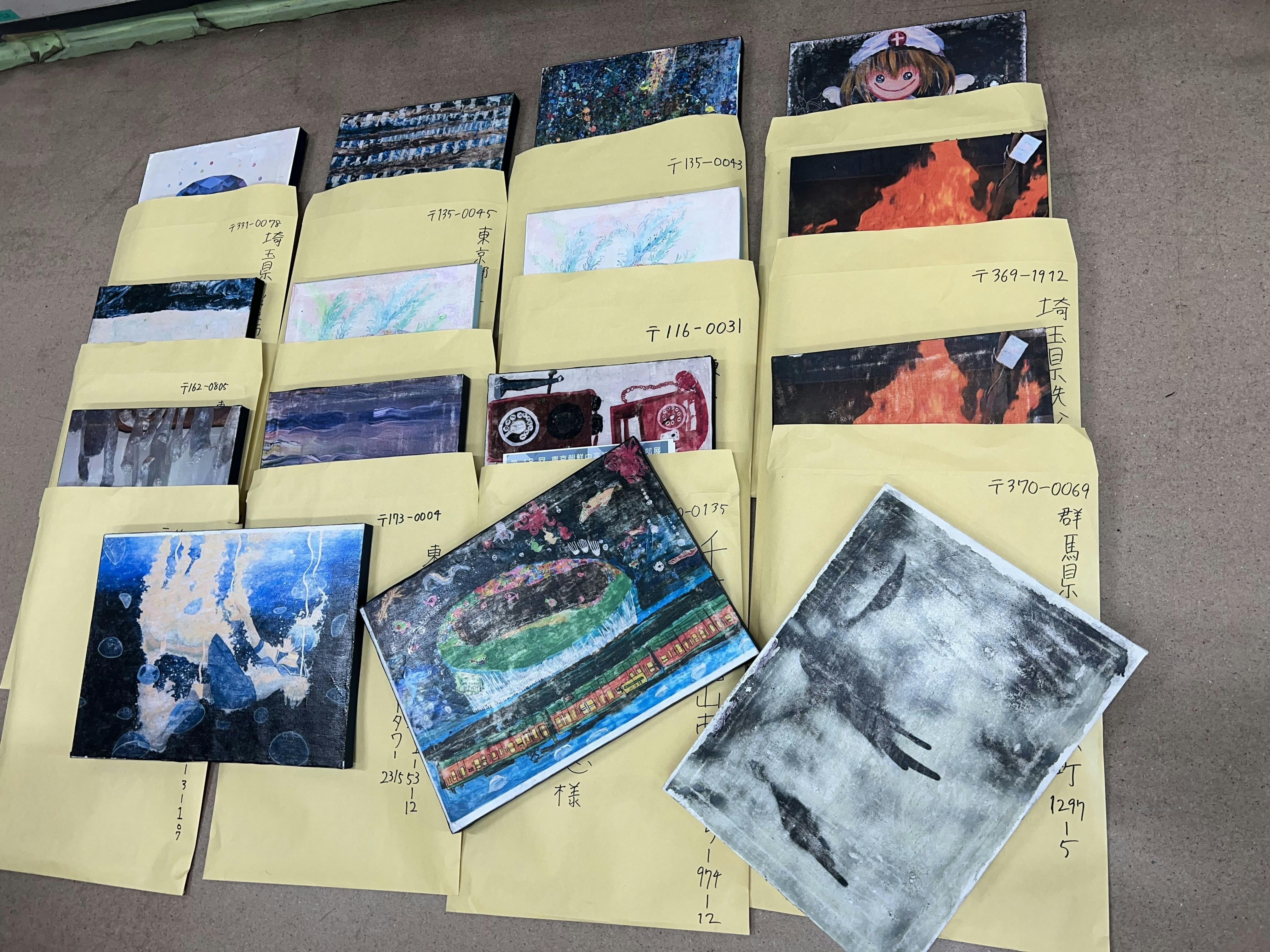 支援された方たちに作品を決めてもらう為、連絡を何度か行いましたが、指定が無かった方たちには、こちらの判断でランダムにレプリカ作品をお送りしています。