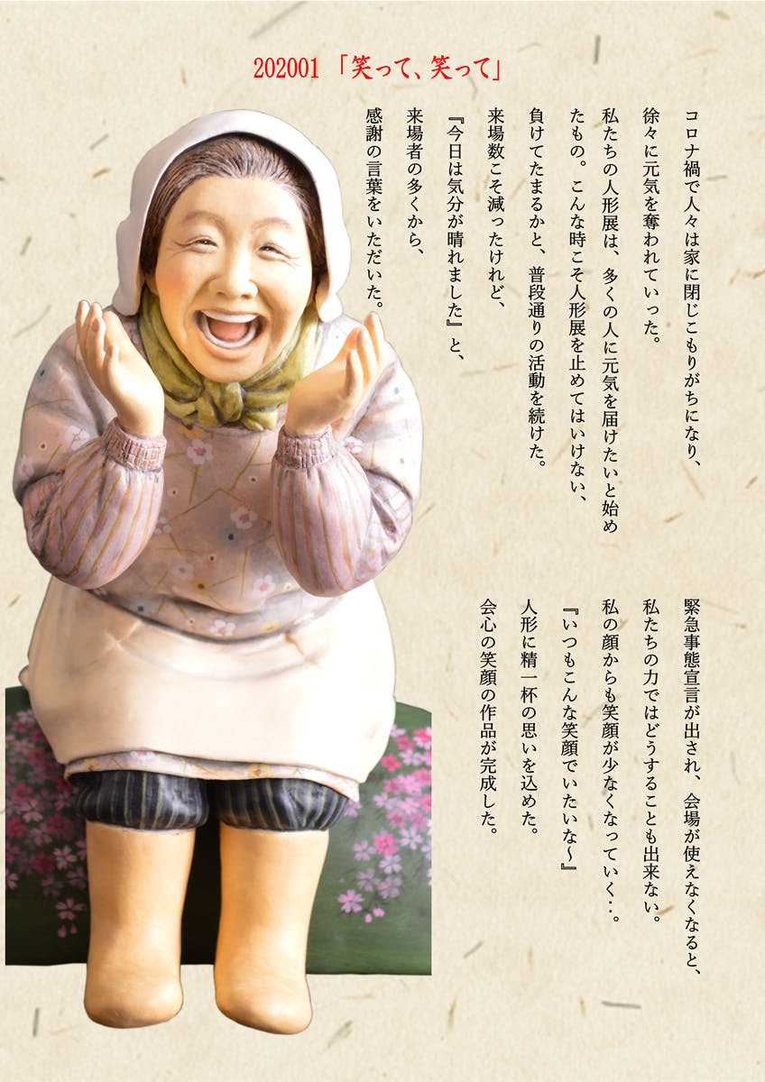 その後も人形展を継続していくのは決して平たんな道ではありませんでした。時としてくじけそうになる時にいつも力を与えてくれるのは、「人形展で涙が出たのは初めてです‥」、「感動しました、こんな人形展は初めてです、続けてくださいね」、と言葉をかけくれる来場者が全国各地にいること。そして今なお創作意欲を失わない作家(家内)がいることです。