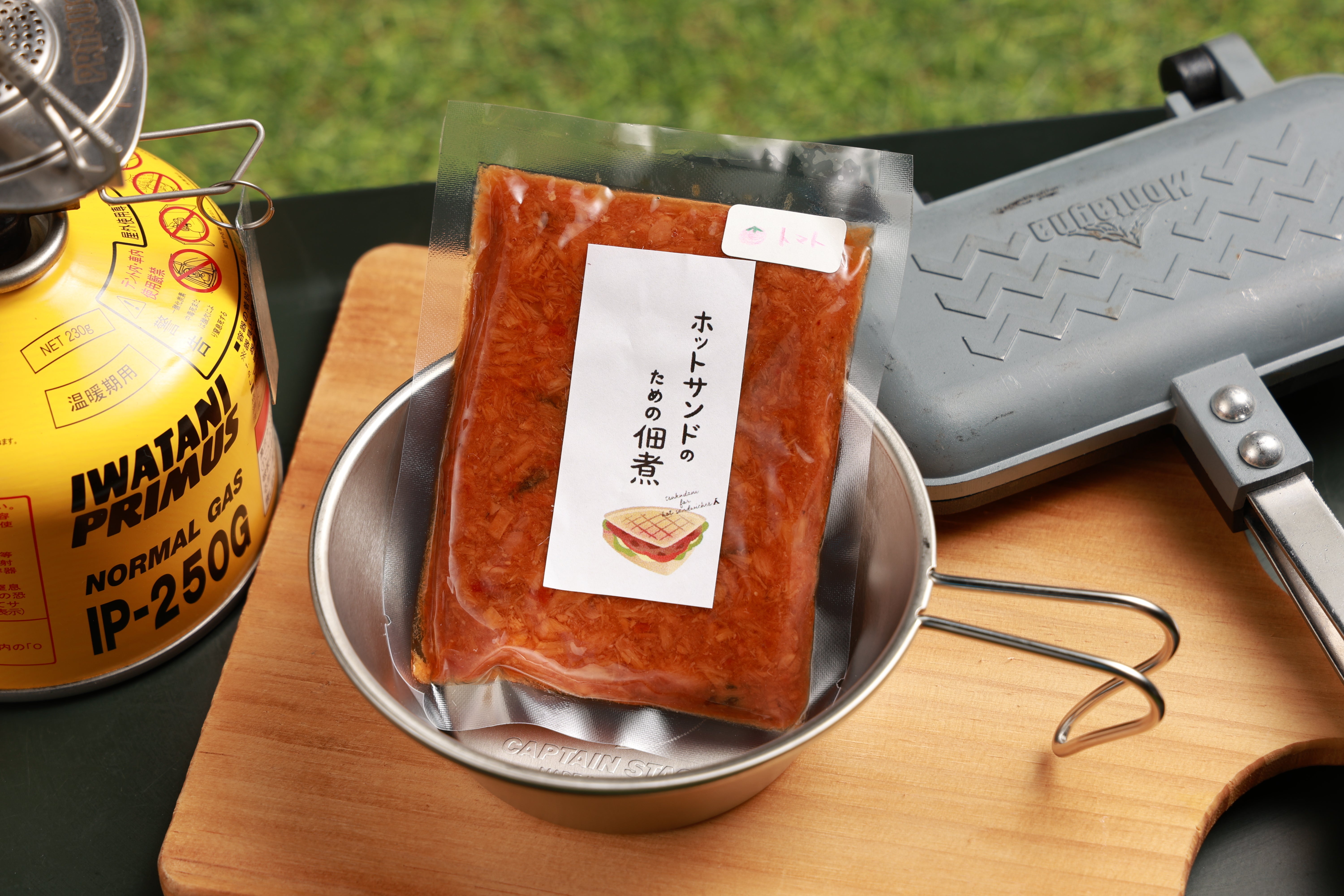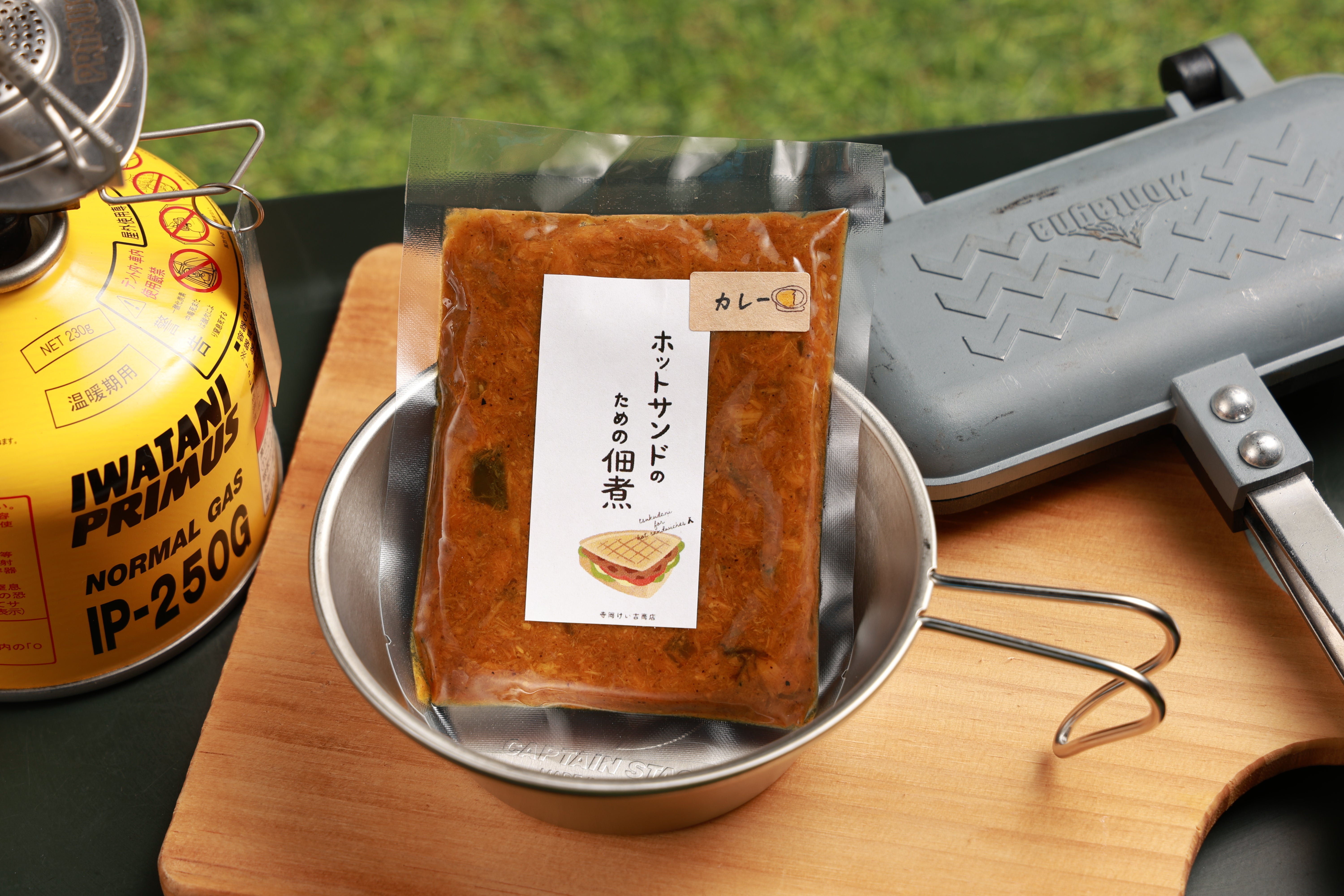 佃煮の最大のメリットは調理のいらない手軽さです。この価値を活かして、アウトドアブームに乗り美味しい「キャンプ飯」としてアップデートできたら「ワクワクする」という新たな体験価値を創造することができるのではないか。佃煮を知らない世代にも焼津独自の食文化について知ってもらえるのではないか。そう考えた私たちは、試作を重ね、キャンプ場の朝食として手軽に佃煮を楽しめるパンに塗る佃煮「ホットサンドのための佃煮」を開発しました!玉ねぎ入りのしょうゆ味