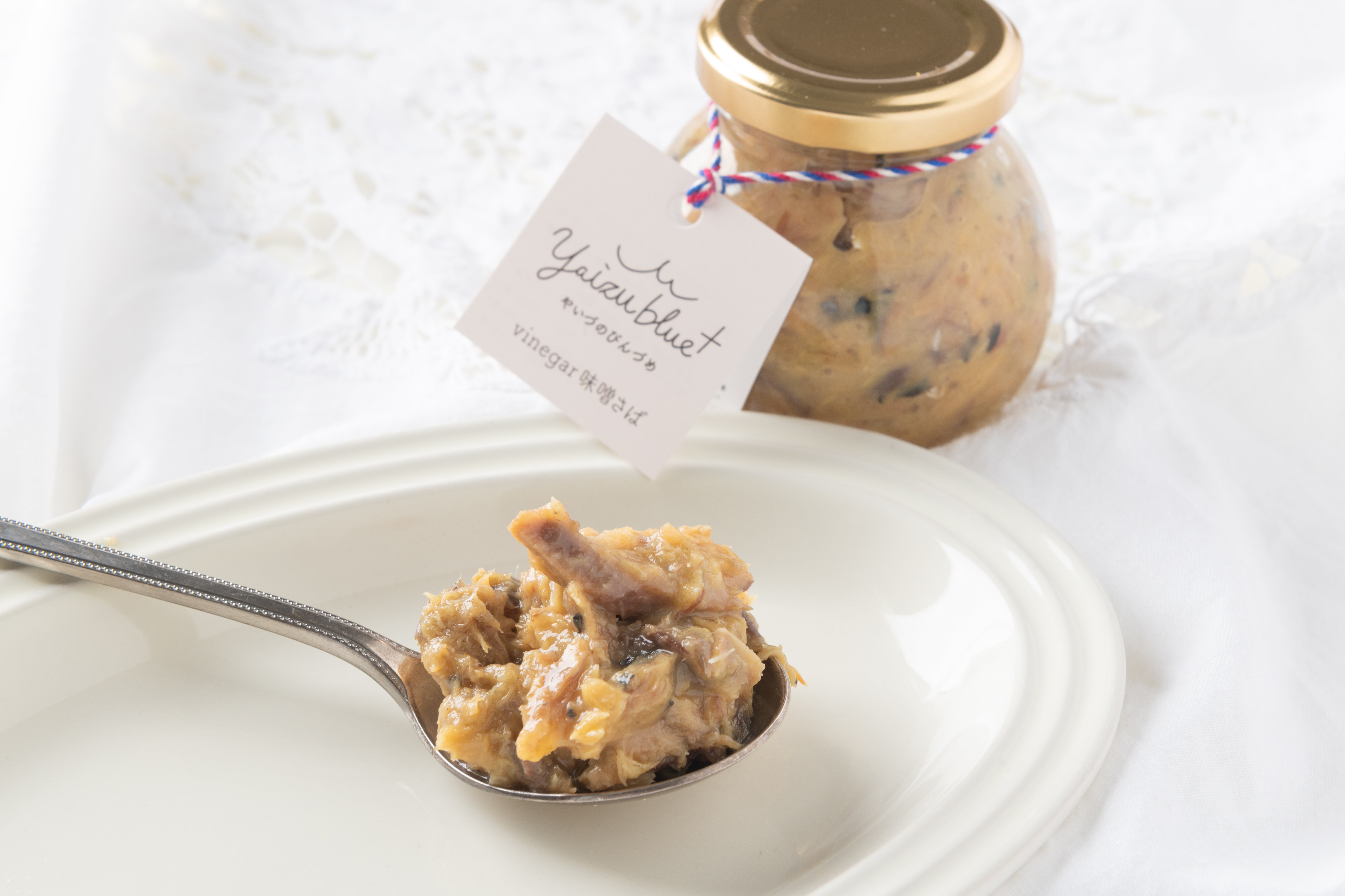 焼津に2つある港のうちの1つが小川(こがわ)漁港。サバやアジが多く水揚げされる小川産のさばを使用したこれまでに無い佃煮です。小川さばの特徴は海外産とは異なる非常にあっさりとした肉質と味わいです。青魚特有の脂がのった旨みから生まれる佃煮が美味しい理由は焼津で製造された「あいじろ」という味噌にあります。江戸時代、愛知の八丁みそや京都の西京みそに代表されるように、日本各地でその地方の風土にあった独特の味噌(手前味噌)が造られるようになりました。静岡の穏やかな風土の中で生まれた「あいじろみそ」は、塩辛さが穏やかで、麹の香りと甘みが広がり、大豆の風味をしっかり感じる味わいです。最後に和からしで味のアクセントを加えました。