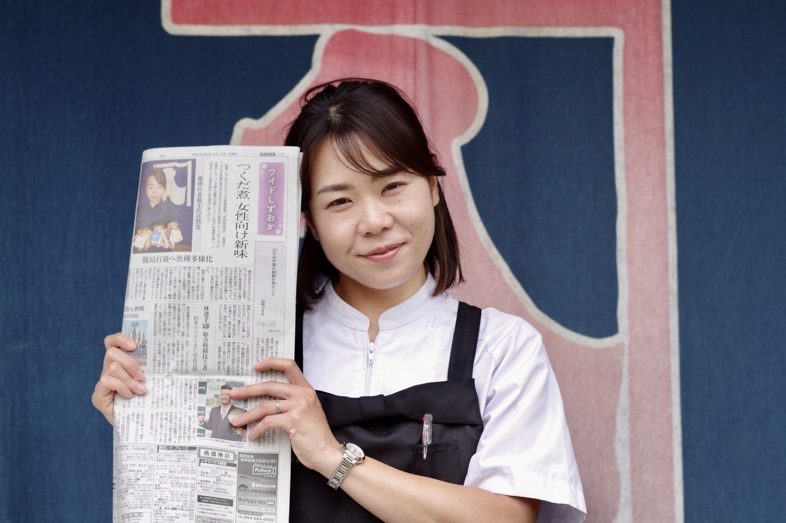 舞さんとは、焼津市で伝統産業を受け継ぐアトツギ仲間です。日本有数のさかなのまち焼津市の伝統産業を守るため、まだまだ旧態依然とした男性主体の佃煮業界で奮闘する舞さん。柔らかな雰囲気とは裏腹に先代の想いや業界を活性化したいという情熱を強く持つ芯がある女性です。
