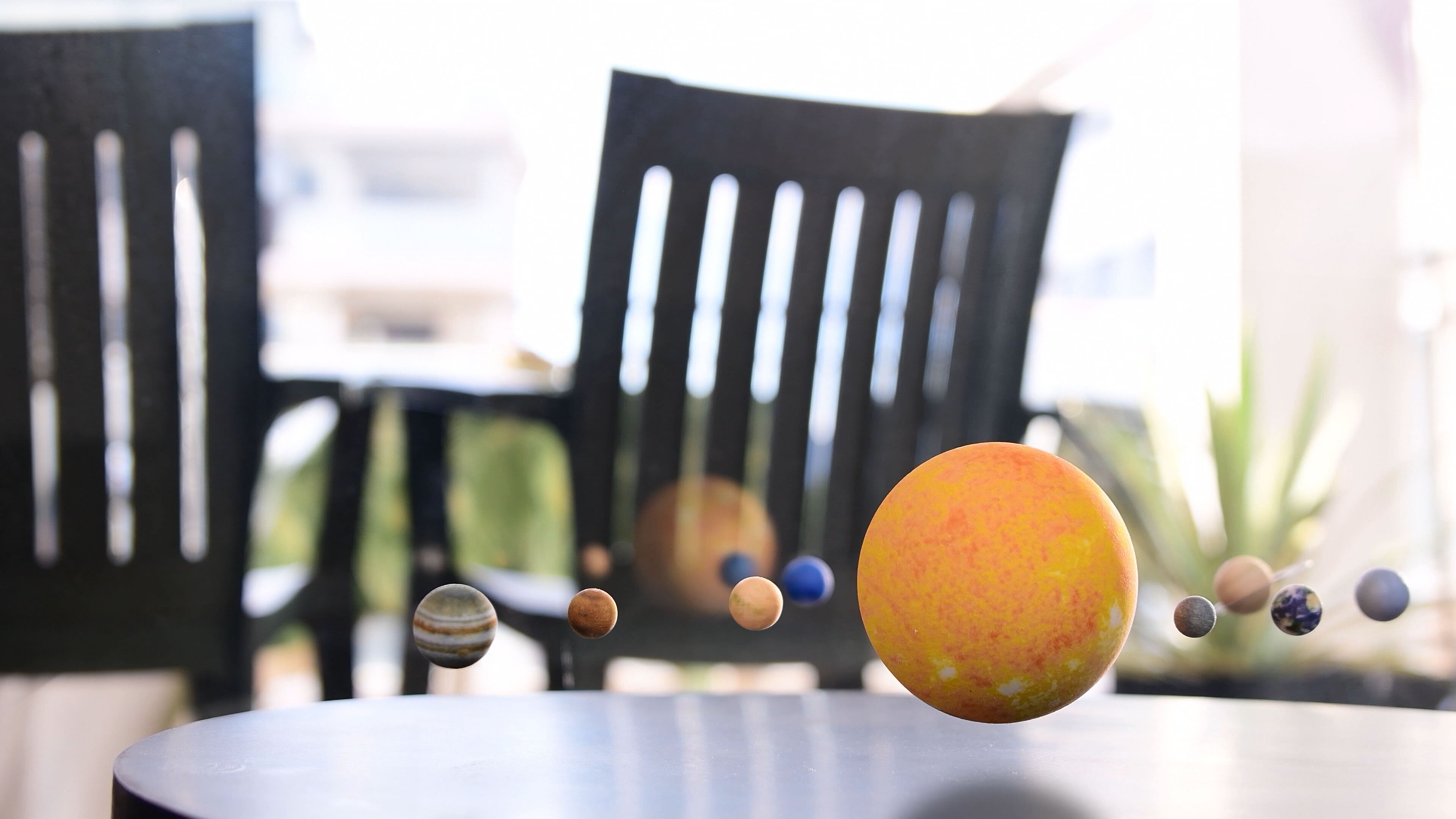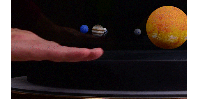 この技術により、それぞれの惑星を実際に空中に浮かべ、正確でリアルタイムな軌道を自動で描かせることを可能にしました。