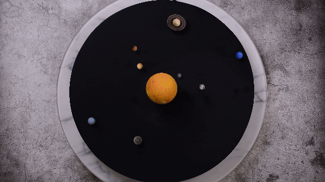 当社独自のデザインにより、惑星たちは常にリアルタイムで正確な位置に保たれ、太陽を中心に美しい軌道を描き続けます。