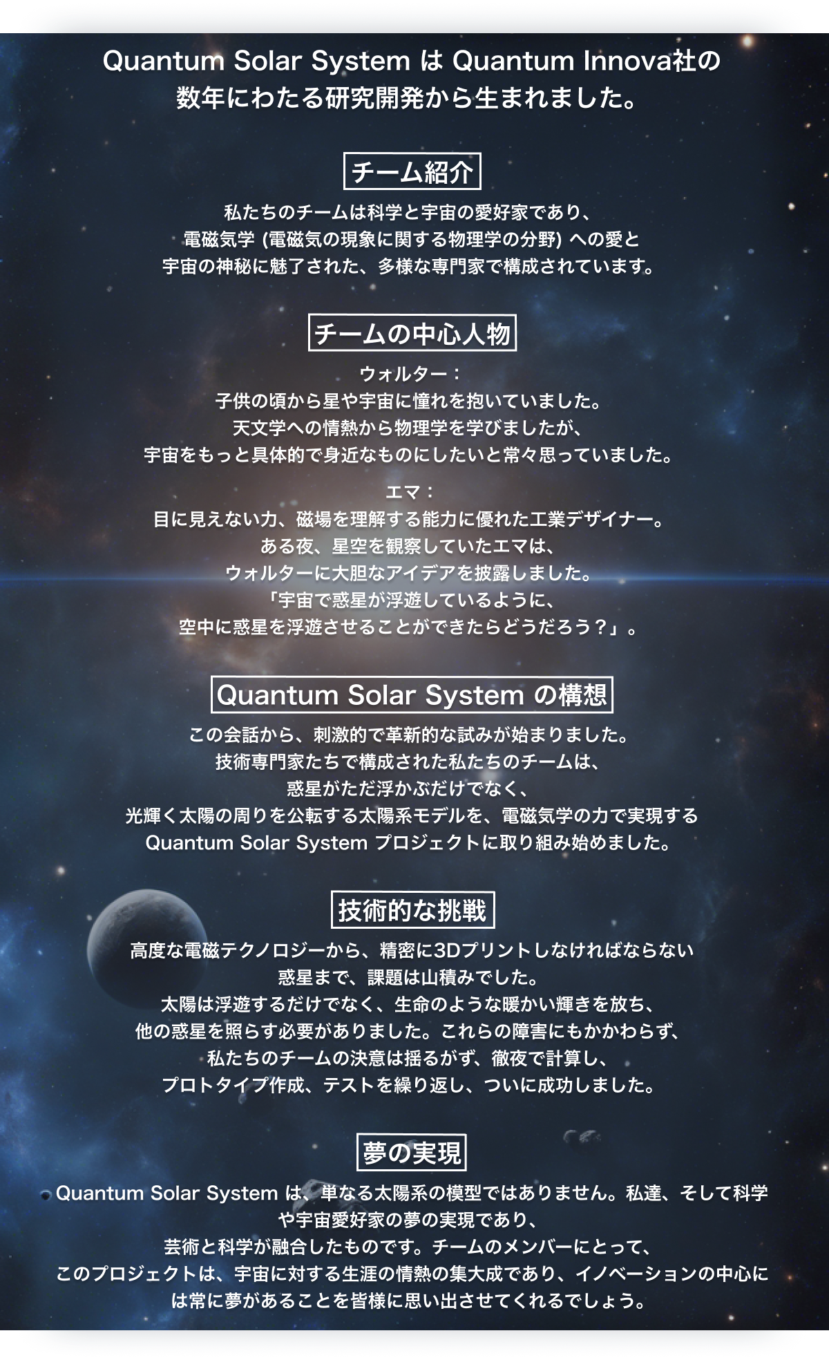 Quantum Solar System(QSS)があれば、神秘的な太陽系の美しさと不思議さをいつでもどこでも存分に体験できます。