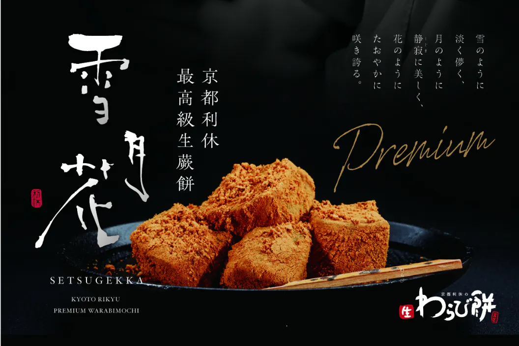 京都利休の生わらび餅「雪月花」は、Aランクのわらび粉をふんだんに使用した高級わらび餅です。是非みなさまに召し上がって頂きたく、期間限定でポップアップ店舗を開きます!
