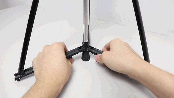 Step2:少し力を入れてゴム脚を下へ押し、脚を展開します。