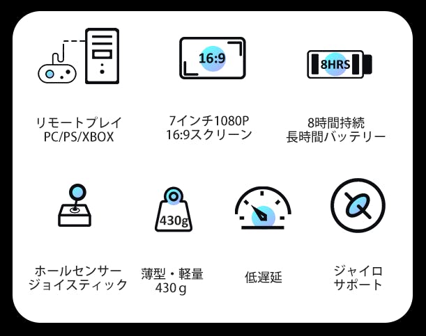 また1980×1080のフルHD・7インチ解像度で、手のひらサイズと思えない迫力を保証します。