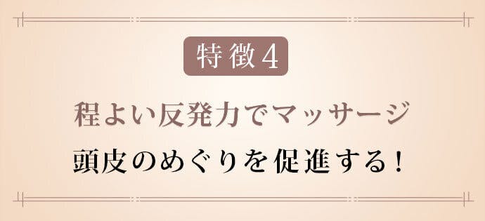 毛先の一本一本はもちろんブラシ全体に「超美振動P-UP」加工を施しているため、汚れを落とす力に優れ、めぐりをスムーズにしてやわらかな頭皮と美しい髪へと導きます。