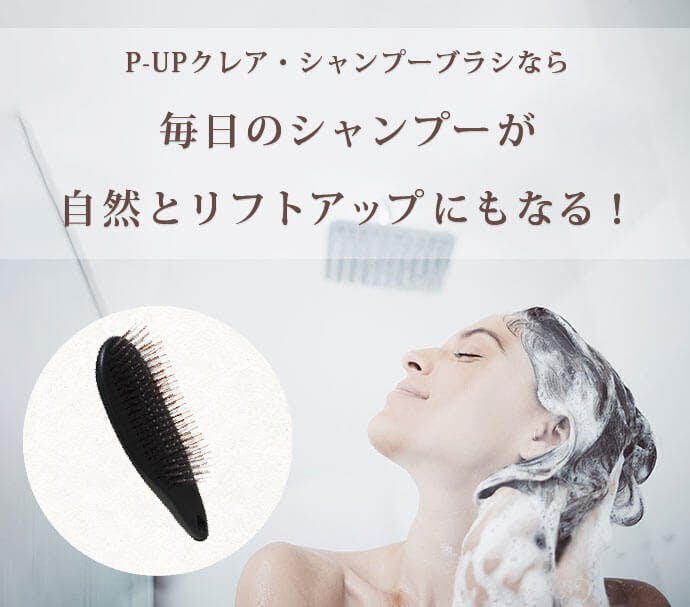 P-UPクレア・シャンプーブラシなら、ブラシを縦方向に動かすだけで、ラクに、効率よく、コラーゲン繊維をいたわりながら、毛穴の汚れまでスッキリと洗い上げることができるんです。