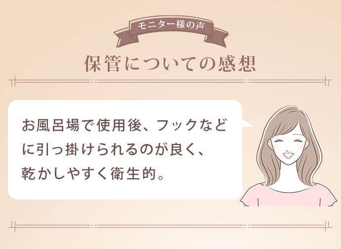 P-UPクレア・シャンプーブラシなら、吊り下げて保管が可能。蒸し暑い夏や梅雨時期など、雑菌の繁殖が気になる人でも、毎日、衛生的にお使いいただけます。