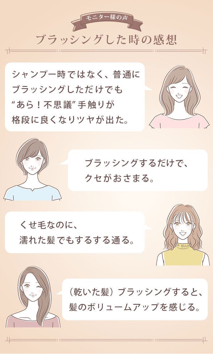 P-UPクレア・シャンプーブラシは、サロン様にも大好評。さらに、サロンに通われるお客様には、「とかすだけでトリートメントしたような髪になる」とも、ご好評をいただいています。
