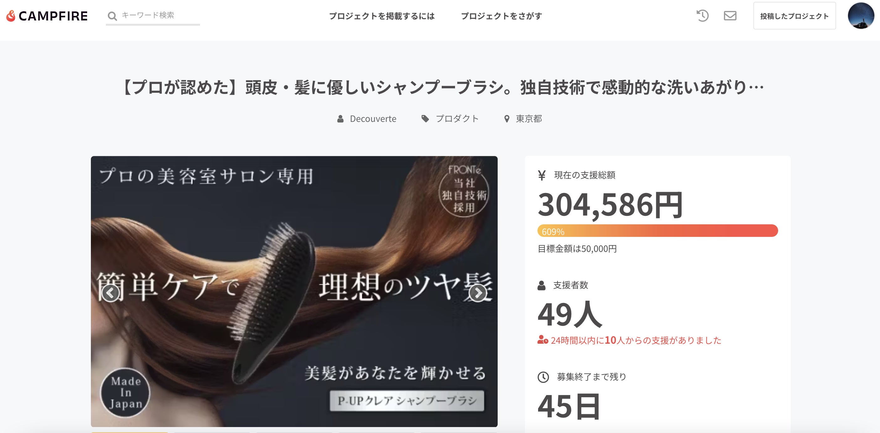 皆様こんにちは、P-UPクレアシャンプーブラシ 正規代理店デクヴェルトです。おかげさまでネクストゴール目標20万円を突破し、30万円を突破致しました!進捗609%となっております!_____________現在、最もお買い得で「おすすめな商品」はこちらです。 ↓【超早割15%OFF・先着50名様】P-UPクレア シャンプーブラシ × 1個 6,358円こちらは残り50名で完売となりますので、ぜひお早めにチェックしてみてください!ネクストゴール目標50万円を目指して頑張ります!_____________より多くの方々にP-UPクレアシャンプーブラシをお届けできように頑張りますので、SNSなどでの拡散にご協力を頂けますと幸いです。引き続き、宜しくお願い致します。プロジェクトページへhttps://camp-fire.jp/projects/view/720181