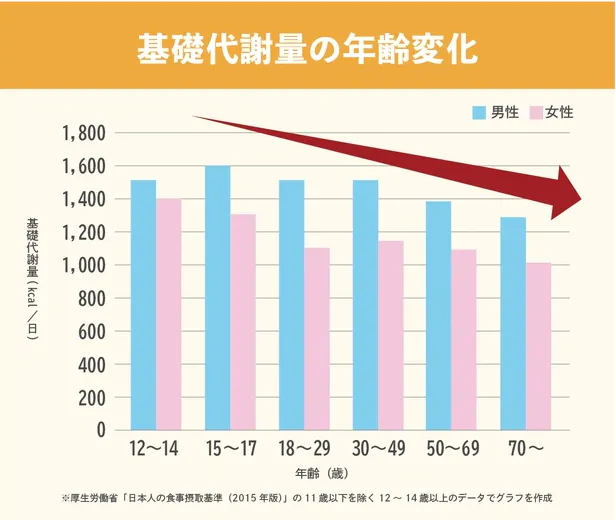 さらに、基礎代謝量は年齢とともに減少するといわれています。