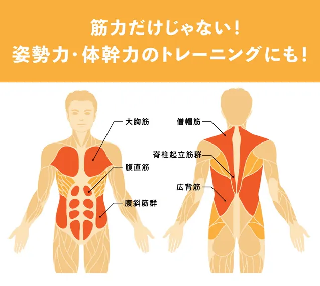 コアスクイーズサーフェスは筋力をサポートするだけではなく、姿勢や体幹を鍛えることができます。