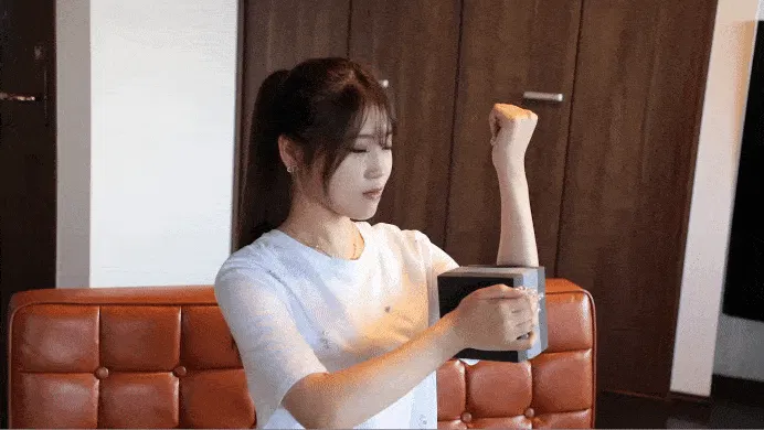 気になる二の腕周りをコアスクイーズサーフェスを用いてこのようにトレーニングすることで筋肉と関節に同時にアプローチします。