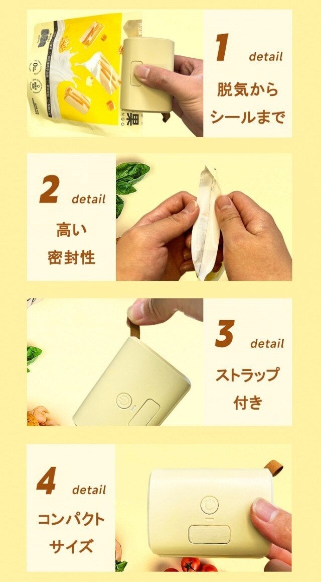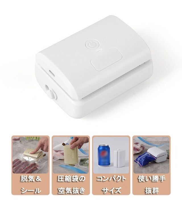 お菓子袋、キッチン用袋など、専用袋なしで、シーリングすることができます。複雑の操作は一切なし、誰でも簡単に使える。