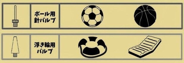 付属のボール用と浮き輪バルブを使用し、空気入れにもOK!!