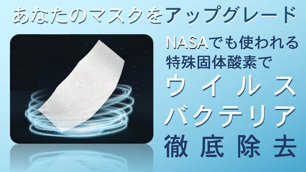 「OxyGeneration」マスク用固体酸素シートは、既存のマスクの内側に貼ることで、特殊な技術で酸素が発生し、マスクの様々な悩みが解消できる商品です。