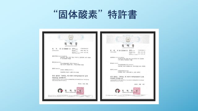固体酸素に関する技術力と独自のノウハウが認められ、特許取得しました。