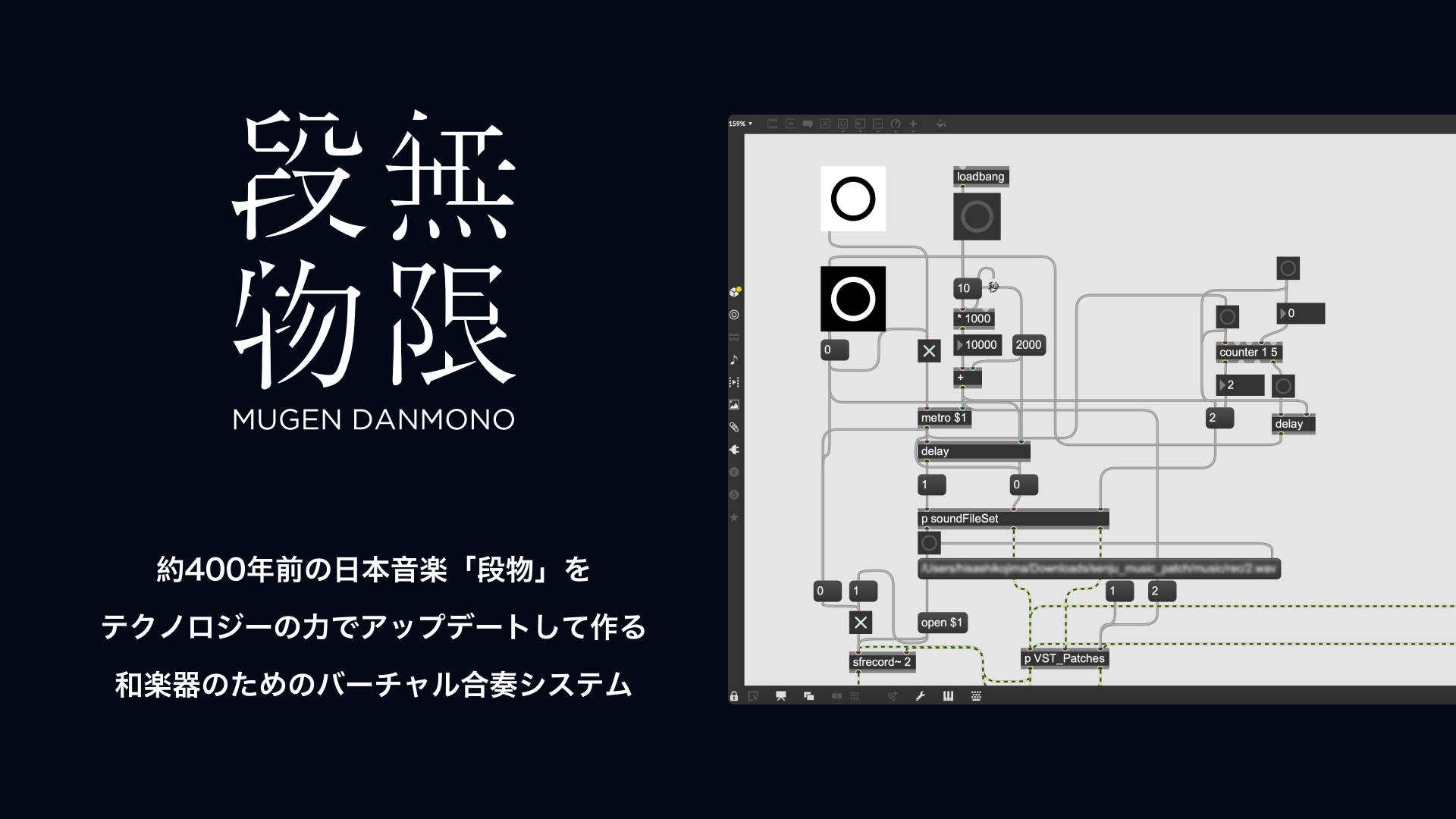 「無限段物」は、大量の和楽器の音源を、コンピュータ上で処理することで、新たな音楽を生成する「和楽器のためのバーチャル合奏システム」です。