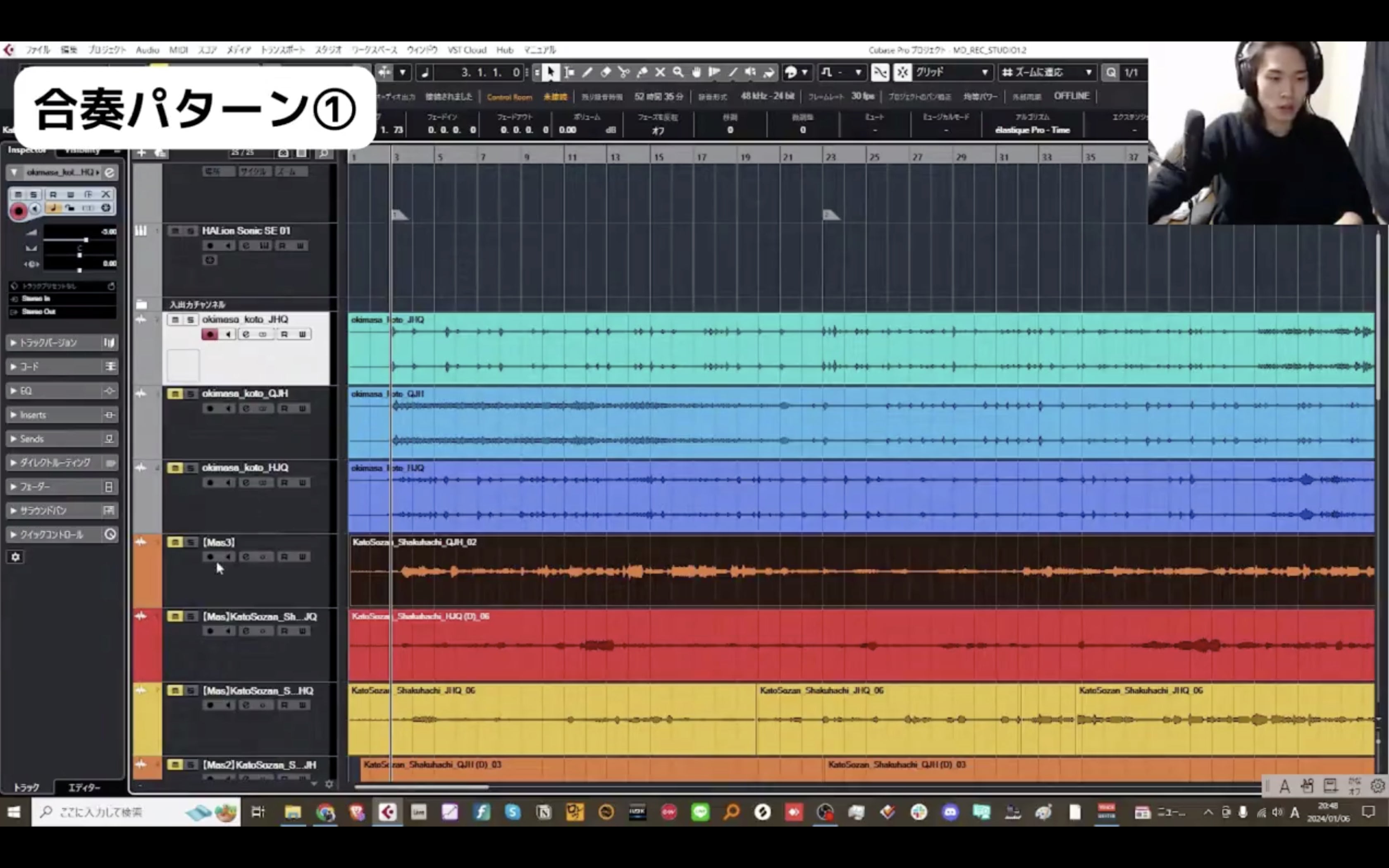 無限段物は、最終的にはサウンドプログラミングソフト「MAX」上で実装されますが、今回は簡易的に音楽制作ソフト上でシミュレーションしてみました!箏と尺八だけという限られた楽器の中でも、次々とペアを変えることで違った雰囲気になるのが面白いですね!動画では、4パターンの合奏を聴くことができます。