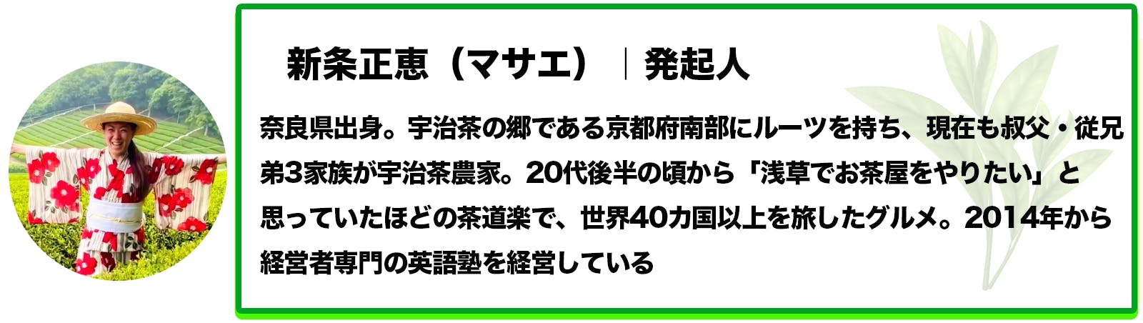 私の人生で初めての挑戦を、温かい応援で支えてくださるととても嬉しく思います。皆さまとご一緒して、日本のお茶の新しい物語を紡いでいける事を心から楽しみにしております。